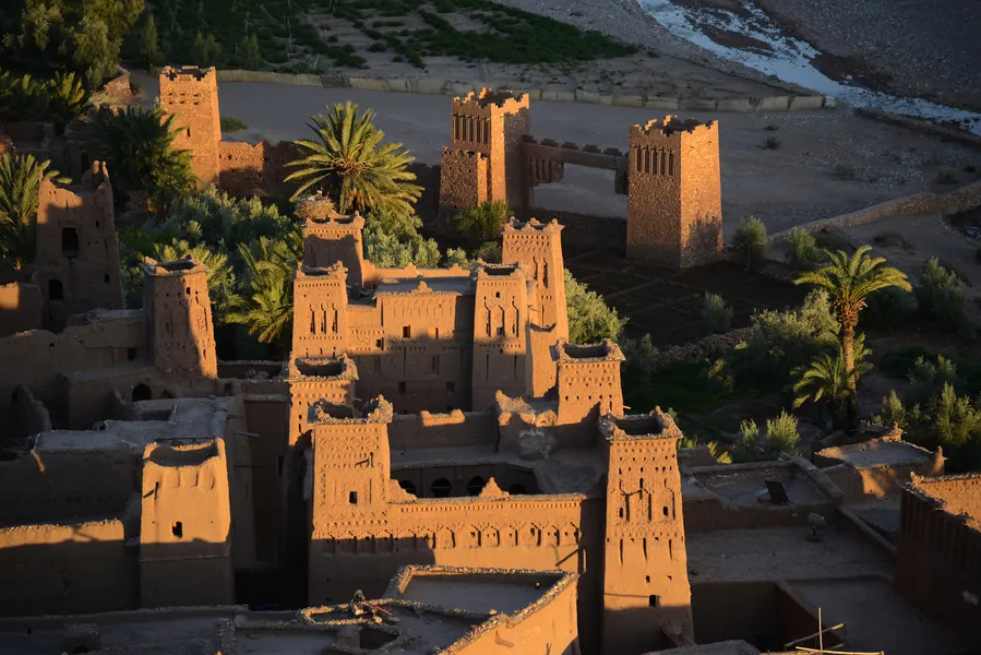 Ait Benhaddou is a fortified city, or ksar, along the former caravan route between the Sahara and Marrakesh. It's a stunning example of Moroccan earthen clay architecture, featuring kasbahs (fortified houses), towers, and granaries within defensive walls. Explore the narrow streets, climb to the top for panoramic views, and imagine life in this ancient trading hub. Many films and TV shows have been filmed here, adding to its allure.